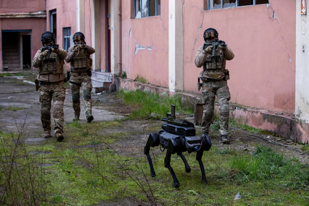 LA2 Dynamics Next-Gen SARBOT: The latest version of Türkiye’s first armed robot, SARBOT, stands out with a 15 kg payload capacity, 80 minutes of operation time, and LIDAR + SLAM-based navigation. The robot can also climb over 220 mm obstacles and maneuver autonomously even in GPS-denied environments.