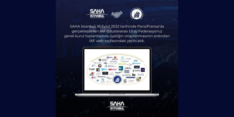 SAHA İstanbul, 18 Eylül 2022 tarihinde Paris/Fransa’da gerçekleştirilen Uluslararası Uzay Federasyonu (The International Astronautical Federation /IAF) genel kurul toplantısında üyeliğin onaylanmasının ardından IAF web sayfasındaki yerini aldı.