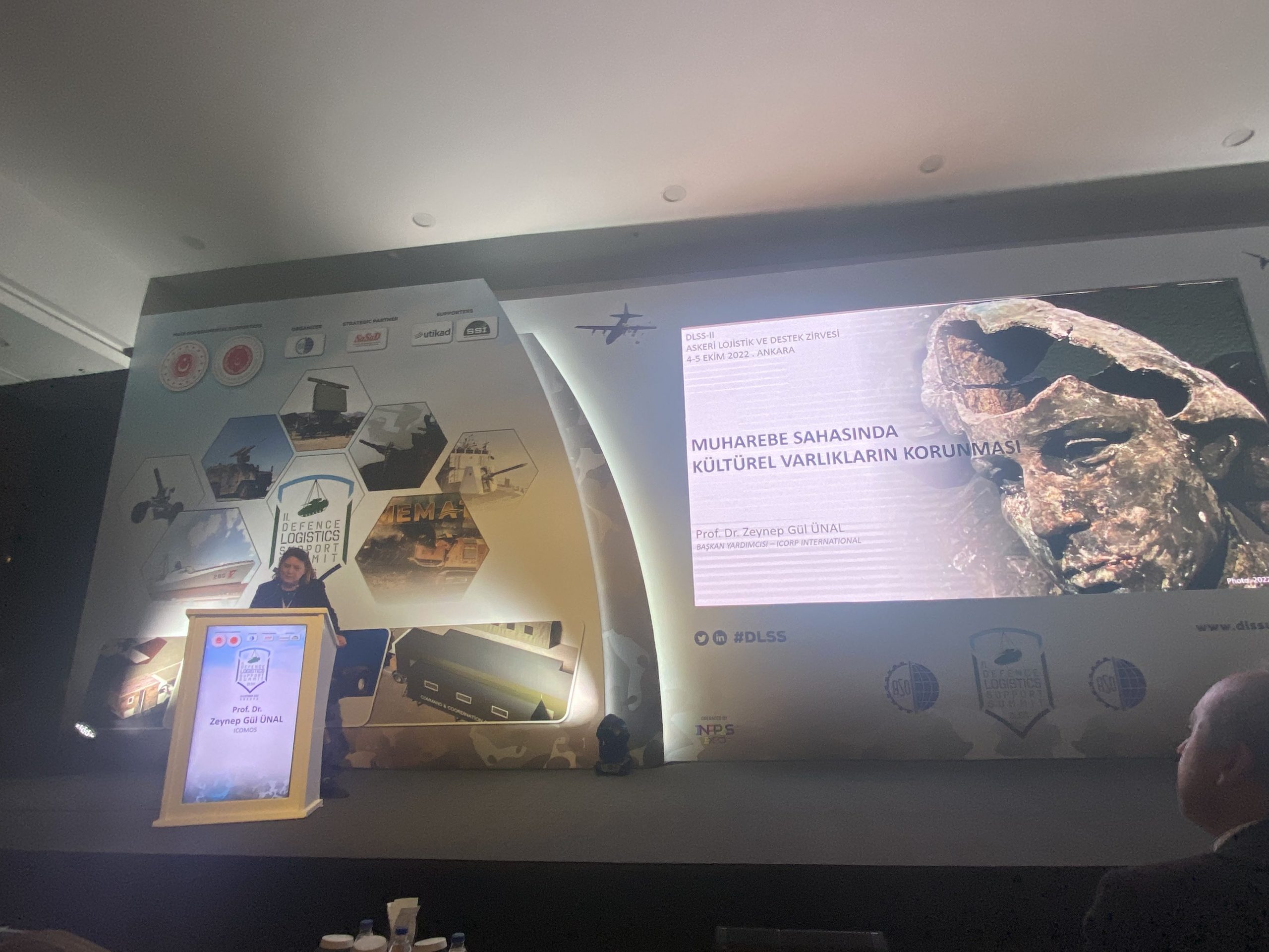 Prof. Dr. Zeynep Gül Ünal, Askeri Lojistik ve Destek Zirvesi’nin ikinci gününde “Muharebe Sırasında Kültürel Varlıkların Korunması” başlıklı sunumuyla katılımcılara kültürel varlıkların öneminden ve korunmasına ilişkin çalışmalardan bahsetti.