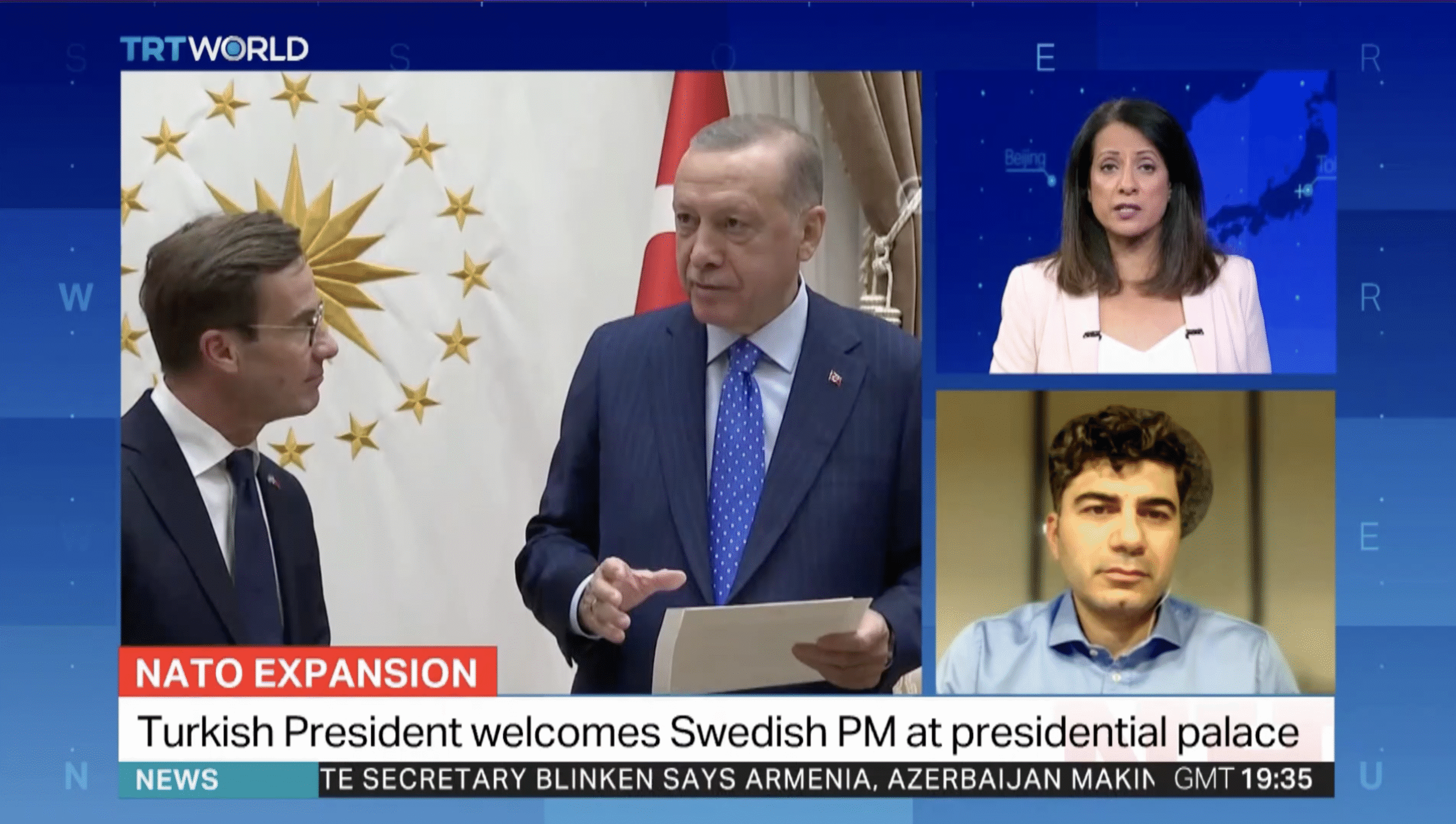 Geçtiğimiz akşam Mildata Genel Müdürü Mahmut Bölükbaş, TRTWorld canlı yayınına katılarak İsveç Başbakanı Ulf Kristersson’un Türkiye ziyareti kapsamında NATO’nun genişlemesi ve Türkiye’nin İsveç’in üyelik başvurusu konusundaki tutumuna dair soruları yanıtladı.