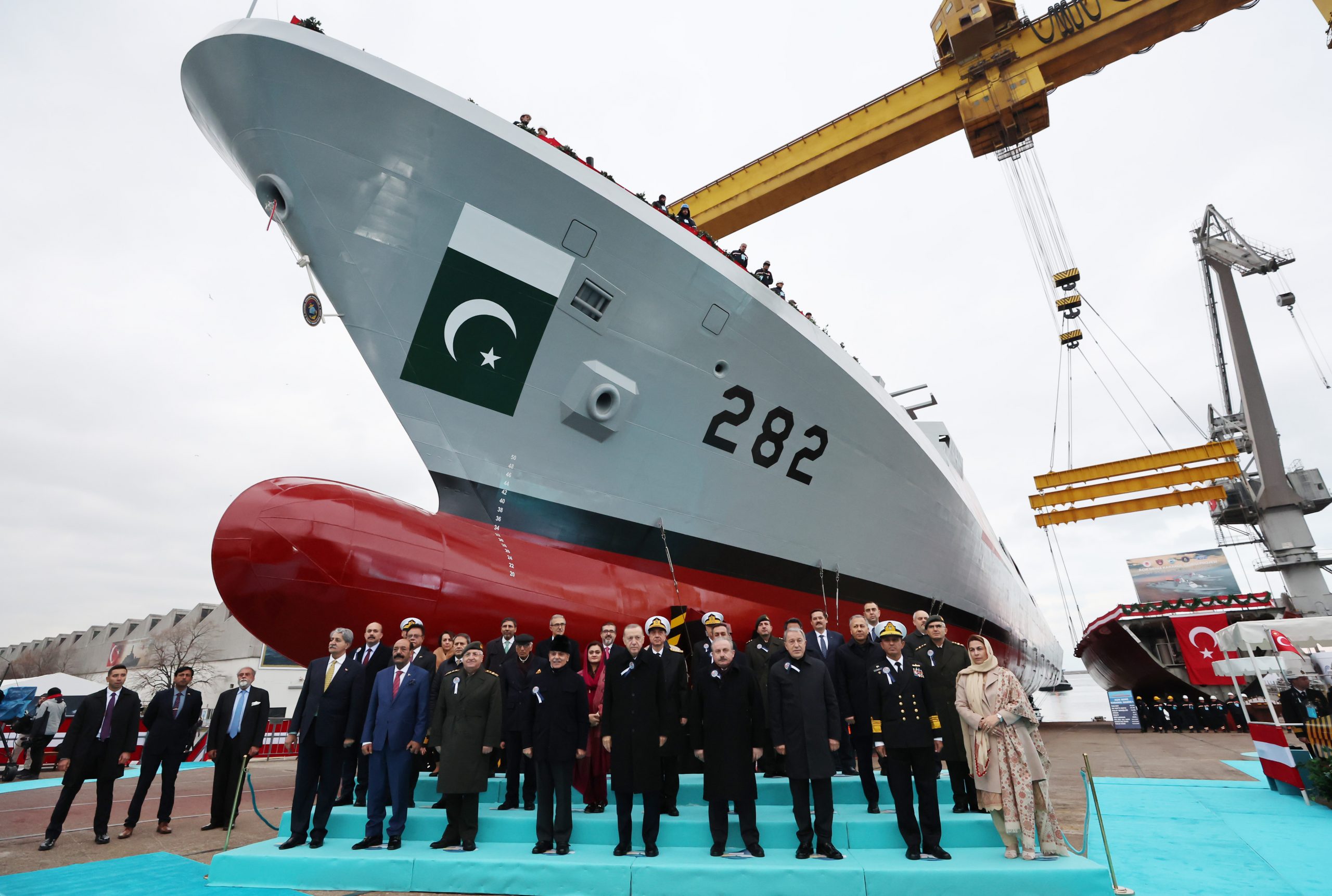 Erdoğan, gelişmeyi sosyal medya hesabında duyurarak teslim törenine ilişkin, “Bugün suya indirdiğimiz MİLGEM korvet gemisinin Pakistan için hayırlı, uğurlu olmasını temenni ediyorum. Aziz kardeşimin şahsında Pakistan halkına en kalbî selam ve muhabbetlerimi iletiyorum.” ifadelerini kamuoyuyla paylaştı.