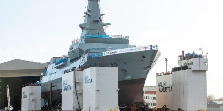 HMS GLASGOW, ilk kez suya girişinin önünü açan yüzdürme işlemine başladı.