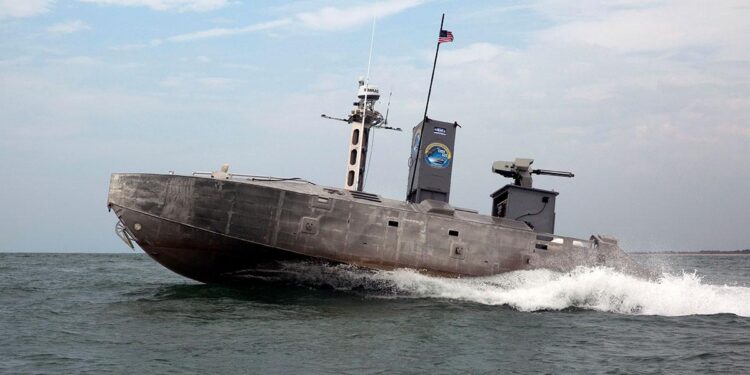 Fotoğraf: LCpl. Nicholas Guevara, USMC / Bir Seferi Harp İnsansız Suüstü Gemisi (USV) 12 Temmuz 2019 tarihinde Camp Lejeune, N.C.’de düzenlenen İleri Deniz Teknolojisi Tatbikatı 2019 sırasında suda önceden belirlenmiş bir rotada otonom olarak seyrediyor. ANTX East 2019, akademik, endüstri ve Donanma katılımcılarıyla yeni teknolojiyi test etmek için tasarlanmış bir etkinlik.