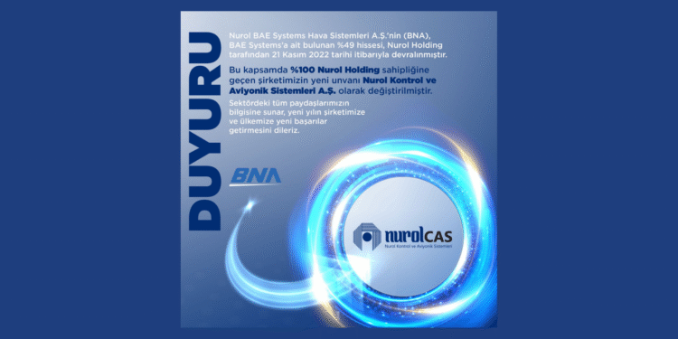 Geçtiğimiz Kasım ayında C4Defence’te de yer aldığı üzere BAE Systems, Nurol BAE Systems Hava Sistemleri A.Ş.’deki (BNA) %49 oranındaki hissesini Nurol Holding A.Ş.’ye satmıştı. Bu anlaşmayla birlikte Nurol BAE Systems Hava Sistemleri A.Ş. %100 Nurol holding sahipliğine geçti.