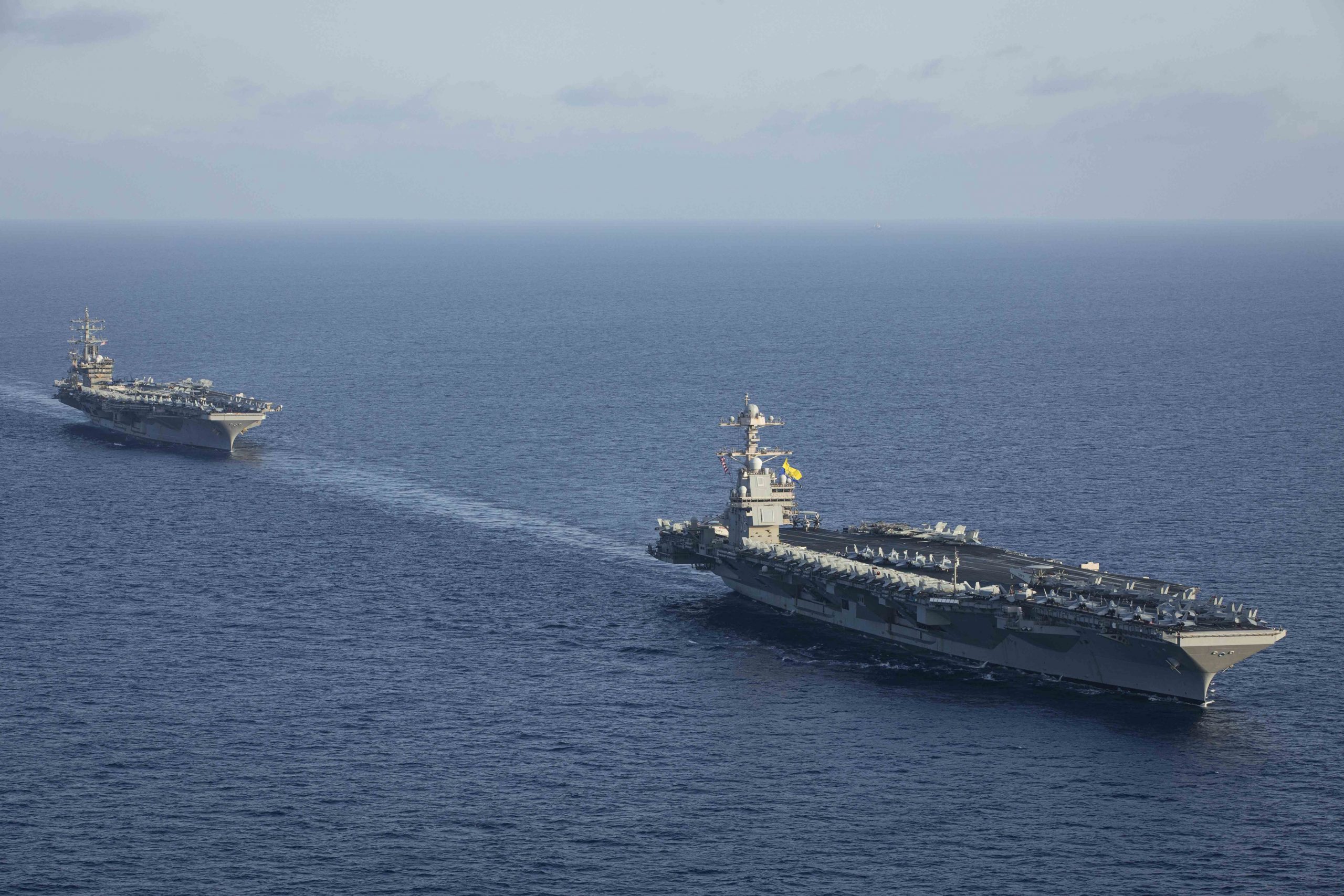 USS Gerald R. Ford (CSG 12) ve USS Dwight D. Eisenhower (CSG 2) adlı iki uçak gemisi görev grubundan denizciler ve havacılar üç gün boyunca zorlu eğitim manevraları gerçekleştirdi.