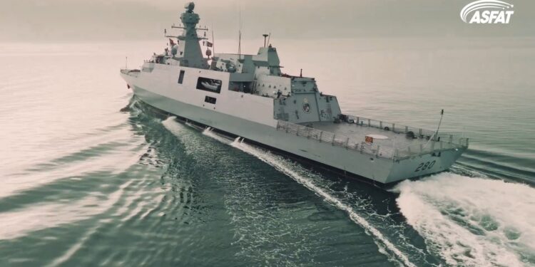 ASFAT tarafından Pakistan Deniz Kuvvetleri için üretilen PN Milgem Korvetlerin ilki PNS Babür’ün açık denizde seyrettiği anlar paylaşıldı.
