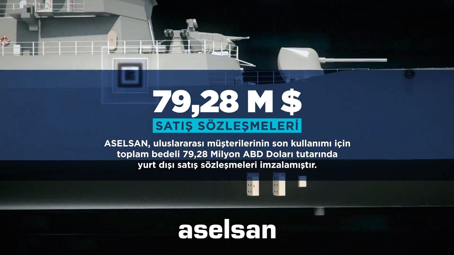 ASELSAN’ın Kamuyu Aydınlatma Platformu’nda (KAP) yer alan açıklamasında, “ASELSAN, Asya ve Orta Doğu’da yerleşik müşterilerinin son kullanımı için elektronik harp, radar, sonar sistemleri ve güdüm kitleri dahil olmak üzere savunma sistemlerinin ihracatına yönelik toplam bedeli 79 milyon 277 bin 900 dolar tutarında yurt dışı satış sözleşmeleri imzalamıştır. Denizaltı savunma harbine yönelik FERSAH 100-N/MF Karinaya Monteli Sonar sisteminin ihracatı, söz konusu sözleşmeler kapsamında ilk kez gerçekleştirilecektir.” ifadeleri yer aldı.