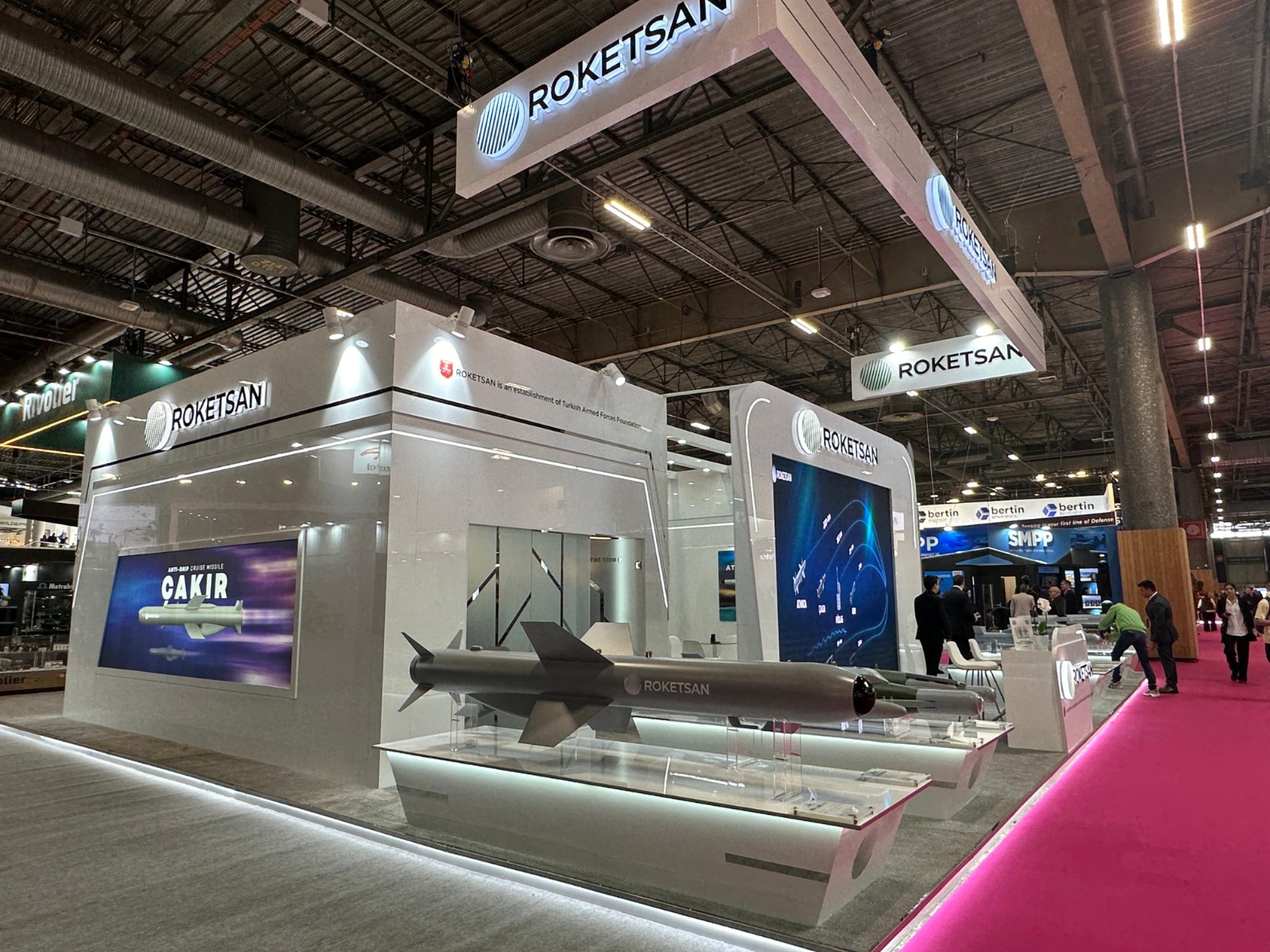 Roketsan, Eurosatory 2024’teki standında; Mini Akıllı Mühimmat ailesinden MAM-C, MAM-L IIR ve MAM-T IIR’ı, hassas güdümlü mühimmatlardan TEBER Güdüm Kiti ve LAÇİN Güdüm Kiti’ni, tanksavar ailesinden Kısa Menzilli Tanksavar Silahı KARAOK, Orta Menzilli Tanksavar Silahı OMTAS ve Genişletilmiş Uzun Menzilli Tanksavar Füzesi UMTAS-GM’yi, hava savunma füzelerinden SUNGUR Hava Savunma Füze Sistemi, HİSAR-O Orta İrtifa Hava Savunma Füzesi’ni, kara sistemlerinden TRLG-122 ve TRLG-230 Füzesi’ni ve ÇAKIR Seyir Füzesi’ni beğeniye sunuyor.