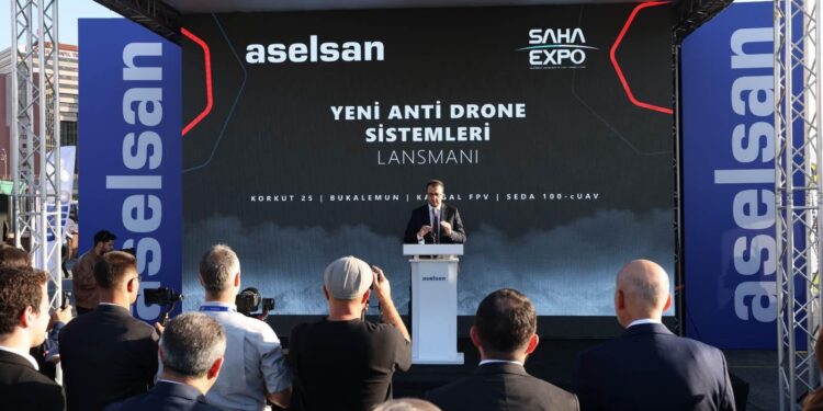 ASELSAN’ın SAHA EXPO’da tanıttığı anti dron sistemleri arasında “KORKUT 25mm Yakın Hava Savunma Sistemi”, “BUKALEMUN GNSS Aldatma Sistemi”, “KANGAL FPV Anti-Drone Sistemi” ve “SEDA 100-Cuav Akustik Drone Tespit Sistemi” bulunuyor.