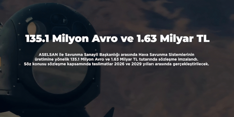 “ASELSAN ile Türkiye Cumhuriyeti Savunma Sanayii Başkanlığı arasında hava savunma sistemlerinin üretimine yönelik 135 milyon 106 bin 533,65 avro ve 1 milyar 635 milyon 406 bin 909,73 lira tutarında sözleşme imzalanmıştır. Söz konusu sözleşme kapsamında teslimatlar 2026 ve 2029 yılları arasında gerçekleştirilecektir.” ifadesi kullanıldı.
