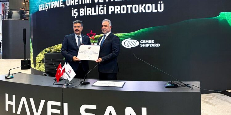 IDEF 2025 kapsamında gerçekleşen imza töreninde Cemre Tersanesi’ni temsilen Yönetim Kurulu Başkanı Orhan Gülcek ve Yönetim Kurulu Üyesi Hüseyin Toftar, HAVELSAN’ı ise Genel Müdür Dr. Mehmet Akif Nacar temsil etti.