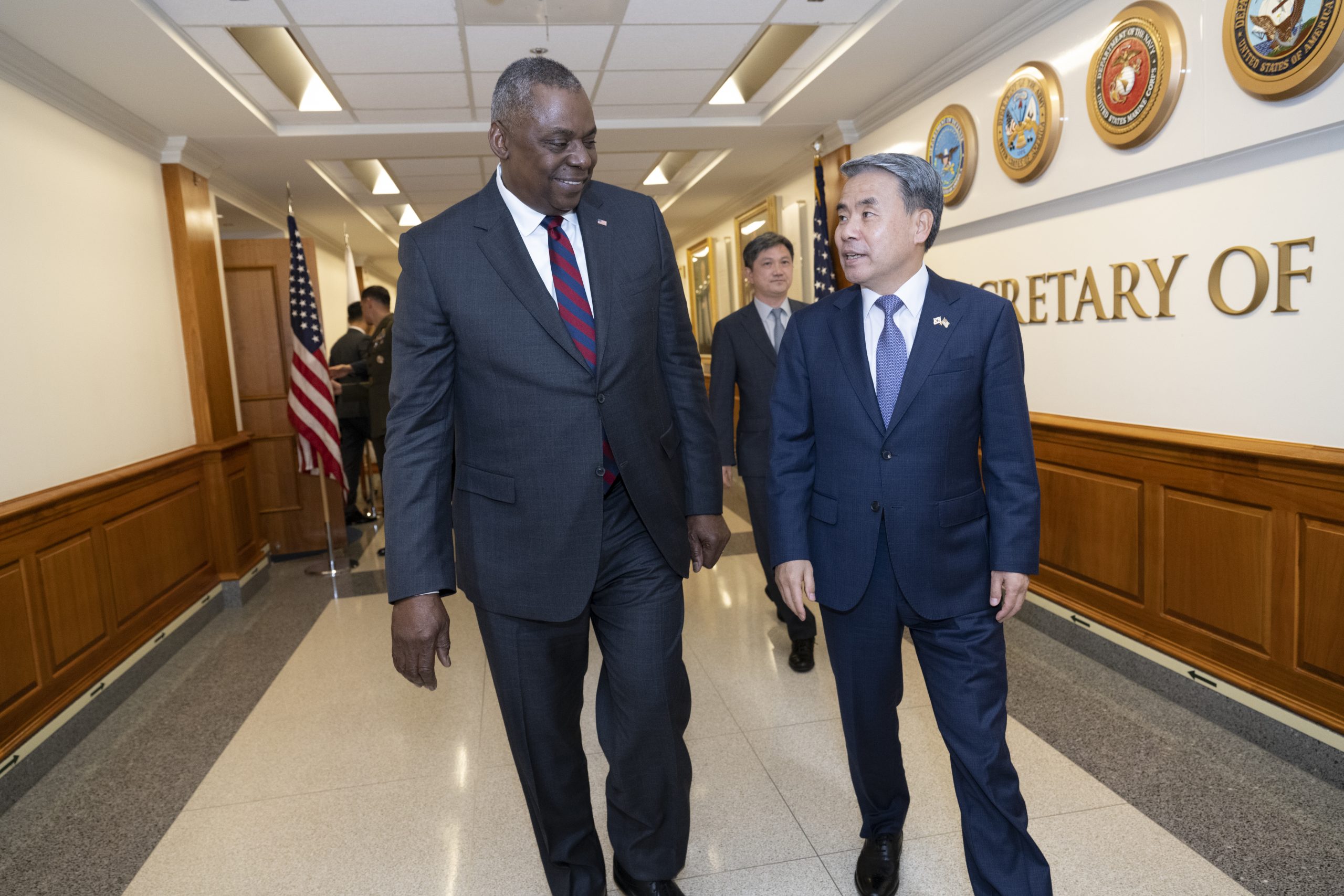 Secretary of Defense Lloyd J. Austin III hosts South Korean Minister of National Defense Lee Jong-sup for talks at the Pentagon, Washington, D.C., July 29, 2022. (DoD photo by Lisa Ferdinando)