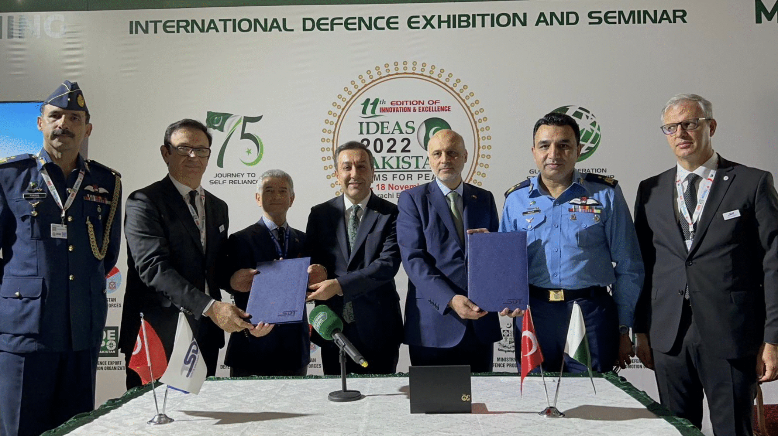 SDT Uzay ve Savunma Teknolojileri AŞ, Pakistan’ın Karaçi kentinde düzenlenen Uluslararası Savunma Fuarı ve Semineri IDEAS 2022’de, Pakistan Hava Kuvvetleri ile simülasyon vasıtasıyla “pilot taktik eğitimi” sunacak sistemleri geliştirmek amacıyla bir sözleşme imzaladı.