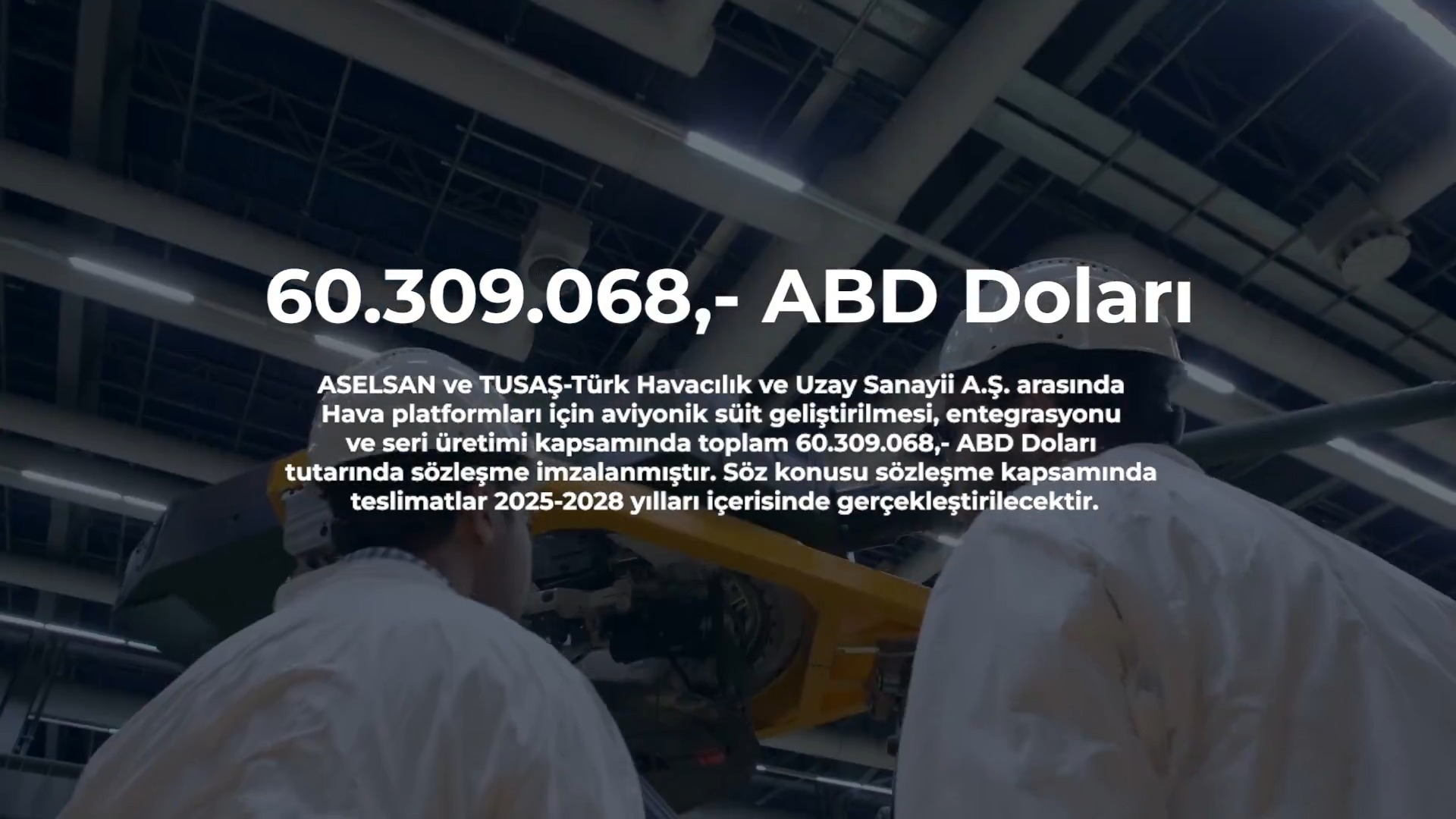 “ASELSAN ve TUSAŞ-Türk Havacılık ve Uzay Sanayii A.Ş. arasında hava platformları için Aviyonik Süit geliştirilmesi, entegrasyonu ve seri üretimi kapsamında toplam 60.309.068,- ABD Doları tutarında sözleşme imzalandı.” ifadeleri yer aldı.