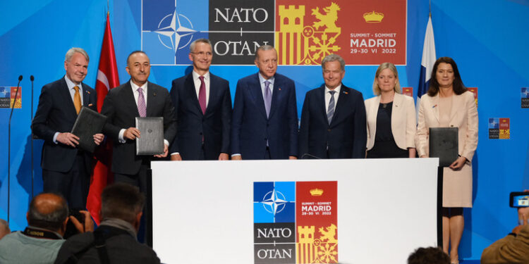 Akar, Finlandiya ve İsveç’in NATO üyeliklerine ilişkin yöneltilen, “Türkiye’nin Finlandiya ve İsveç’in NATO üyeliği yakın gelecekte mi yoksa Türkiye’deki seçimler ve buna bağlı iç siyasi nedenlerle uzayacak mı?” sorusuna onay takviminin İsveç ve Finlandiya’ya bağlı olduğunu vurgulayarak, “Bizim işimiz değil. Bu onların işi (Finlandiya ve İsveç)” dedi. Ayrıca Akar, iki ülkenin üyelik başvurusuna ilişkin açıklamalarında İsveç ve Finlandiya’nın atmaları gereken adımları attıkları koşulda Türkiye’nin konuyu meclise taşımaya hazır olduğunu vurgulayarak “İsveç ve Finlandiya savunma bakanlarına atmaları gereken adımları hızlıca atmalarını söyledim” dedi.