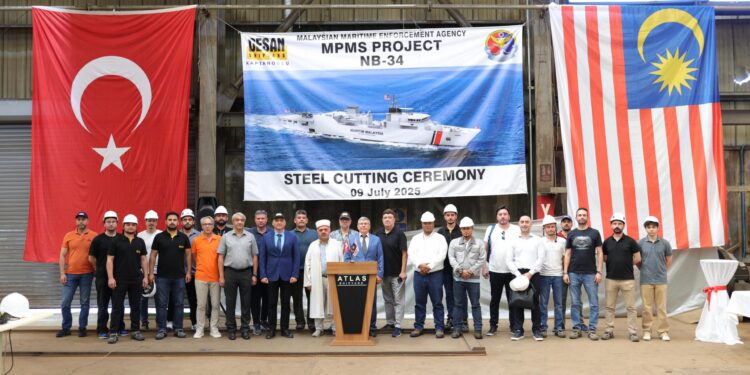Türkiye’nin köklü tersanelerinden DESAN Tersanesi, Malezya Sahil Güvenlik Komutanlığı (MMEA) için inşa edeceği Çok Maksatlı Sahil Güvenlik Gemisi projesinde önemli bir aşamaya geçti. 9 Temmuz 2025 tarihinde düzenlenen sac kesme töreniyle geminin inşa süreci resmen başladı. Malezyalı yetkililer törene çevrim içi olarak katıldı.