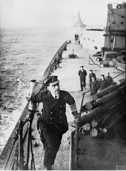 Amiral Sir John Jellicoe’nun amiral gemisi olan İngiliz savaş gemisi HMS Iron Duke’tur . Büyük Filo komutanı olarak Jellicoe, savaş sırasında İngiliz gemilerinin genel komutasından sorumluydu. Jellicoe, bu geminin köprüsünden kritik taktik kararlar aldı.