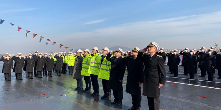 “17 Nisan 2016’da inşasına başlanan ve 2022 yılının Aralık ayında hizmete girmesi planlanan 232 metre boyu ve 27.000 ton deplasmanı ile Deniz Kuvvetlerimizin en büyük gemisi olacak Çok Maksatlı Amfibi Gemi LHD ANADOLU’ya törenle Türk Bayrağı çekildi. Şanlı Bayrağımızın çekilmesiyle birlikte LHD ANADOLU, 07 Mart 2022’de ilk seyrini gerçekleştirecek ve Liman Kabul Testleri başlayacak. Şimdiden ülkemize, asil milletimize ve Deniz Kuvvetlerimize hayırlı olsun.”