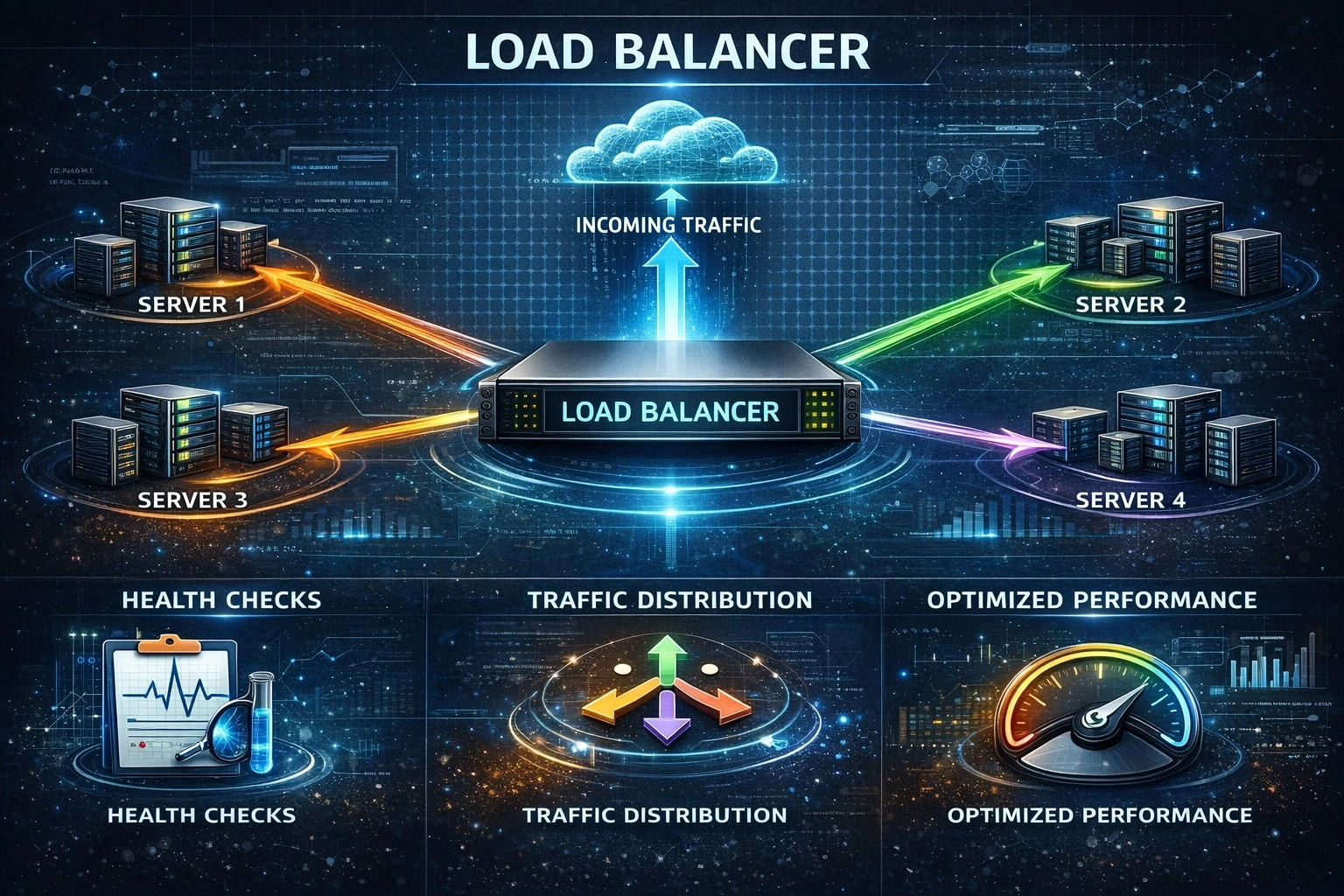 Load balancer, istemcilerden gelen istekleri birden fazla sunucuya yönlendiren, sistem yükünü dengeleyen ve yüksek erişilebilirliği sağlayan bir ağ bileşenidir. Özünde, bir “trafik yöneticisi” gibi davranır. Yükün eşit veya belirli politika doğrultusunda dağıtılması, aşırı yüke maruz kalan sunucuların korunması, sunucu arızalarında servis sürekliliğinin sağlanması (failover), uygulamaların yatay ölçeklendirilmesine imkân tanıması, güvenlik, TLS offloading, caching gibi ek hizmetler sunması alanlarında kritik görevler üstlenir.