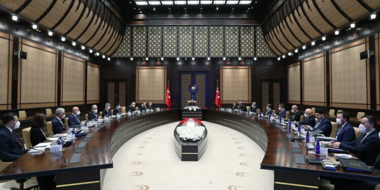 Cumhurbaşkanı Erdoğan’ın başkanlığında Cumhurbaşkanlığı Külliyesi’nde gerçekleşen toplantı yaklaşık 1,5 saat sürdü.