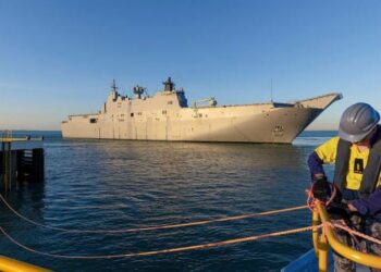 Devamını OkuDetailsDonanmanın en büyük gemilerinden biri, yeni Kuru İskelesi'nin tamamlanmasının ardından Darwin şehrindeki HMAS Coonawarra'ya ilk kez yanaştı. 230 metre uzunluğundaki ...