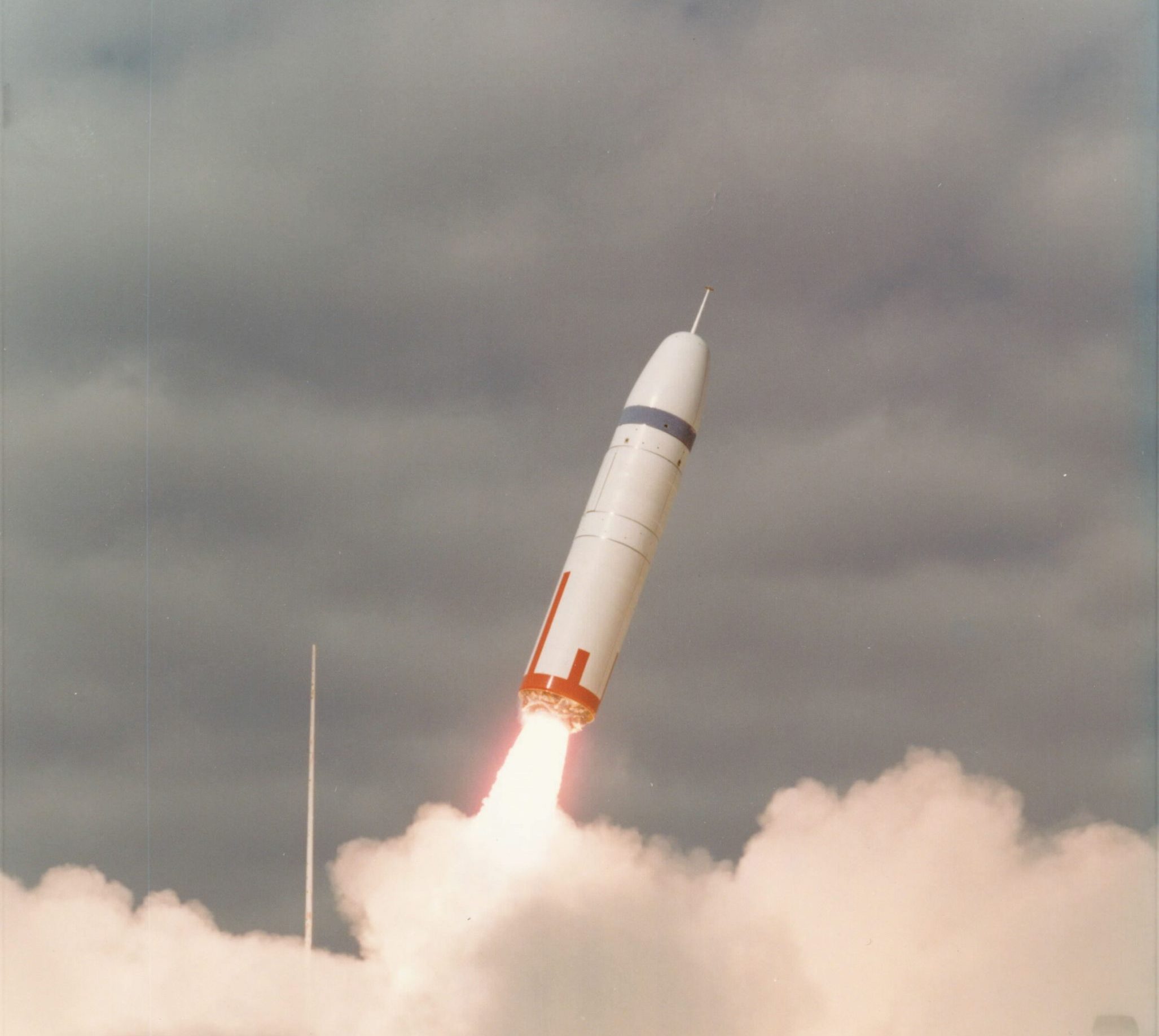 030910-N-0000X-002 Naval Historical Center, Washington, D.C. (Jan. 18, 1977) Ð Air Force file photo of the first launch of a Trident missile on Jan. 18, 1977 at Cape Canaveral, Fla. The Navy museum has just received an example of a Trident I C-4 missile, which will be part of a submarine exhibit in the future cold war annex of the museum. The C-4 was based on an extended-range version of the older Poseidon missile, and led to the current and more advanced Trident II D-5 missile. First deployed in 1979, the Trident I was used on 12 Lafayette-class and the first eight Ohio-class submarines. U.S. Navy file photo. (RELEASED)